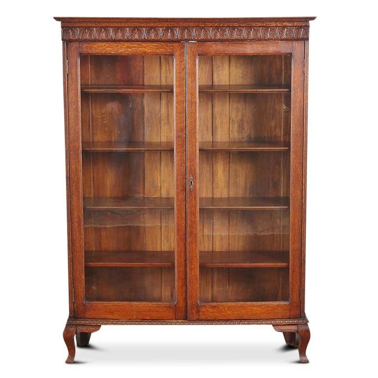 Large Antique Hand Carved Oak Bookcase For Sale At 1stdibs