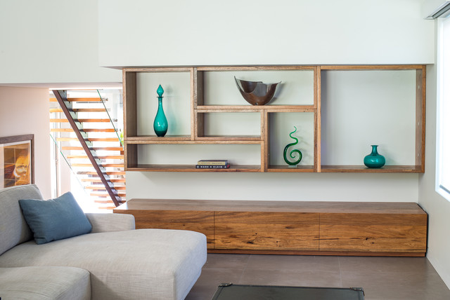 Floating Media Cabinet And Shelves Contemporary Living Room