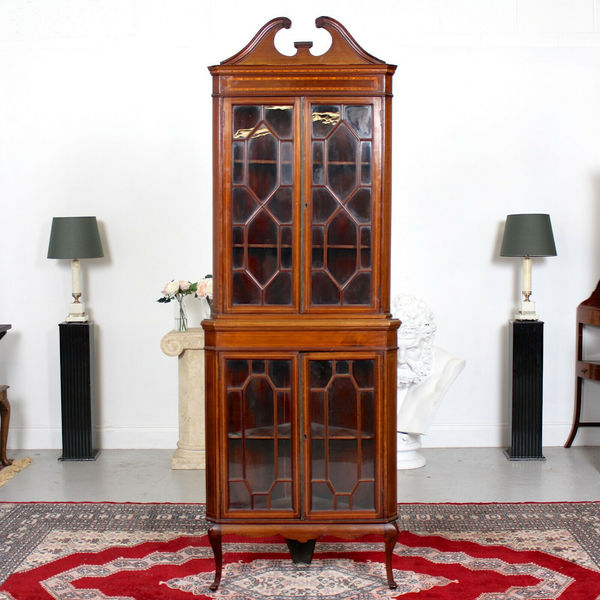 Antique Glazed Mahogany Corner Cabinet 19th Century Astragal Tall
