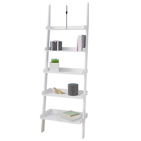 Amazon Com White Finish 5 Tier Bookcase Shelf Ladder Leaning 72