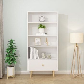 Pure White Solid Wood Japanese Style Three Or Five Layer Bookcase