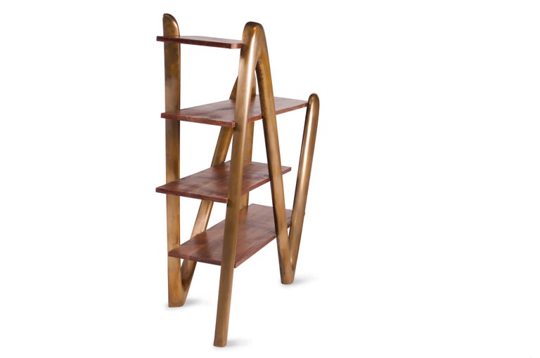 Amorph Luxor Bookcase With Solid Walnut And Gold Finish For Sale