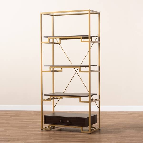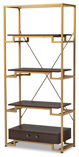 Shop Contemporary Gold Tone And Dark Brown 3 Shelf Bookcase With