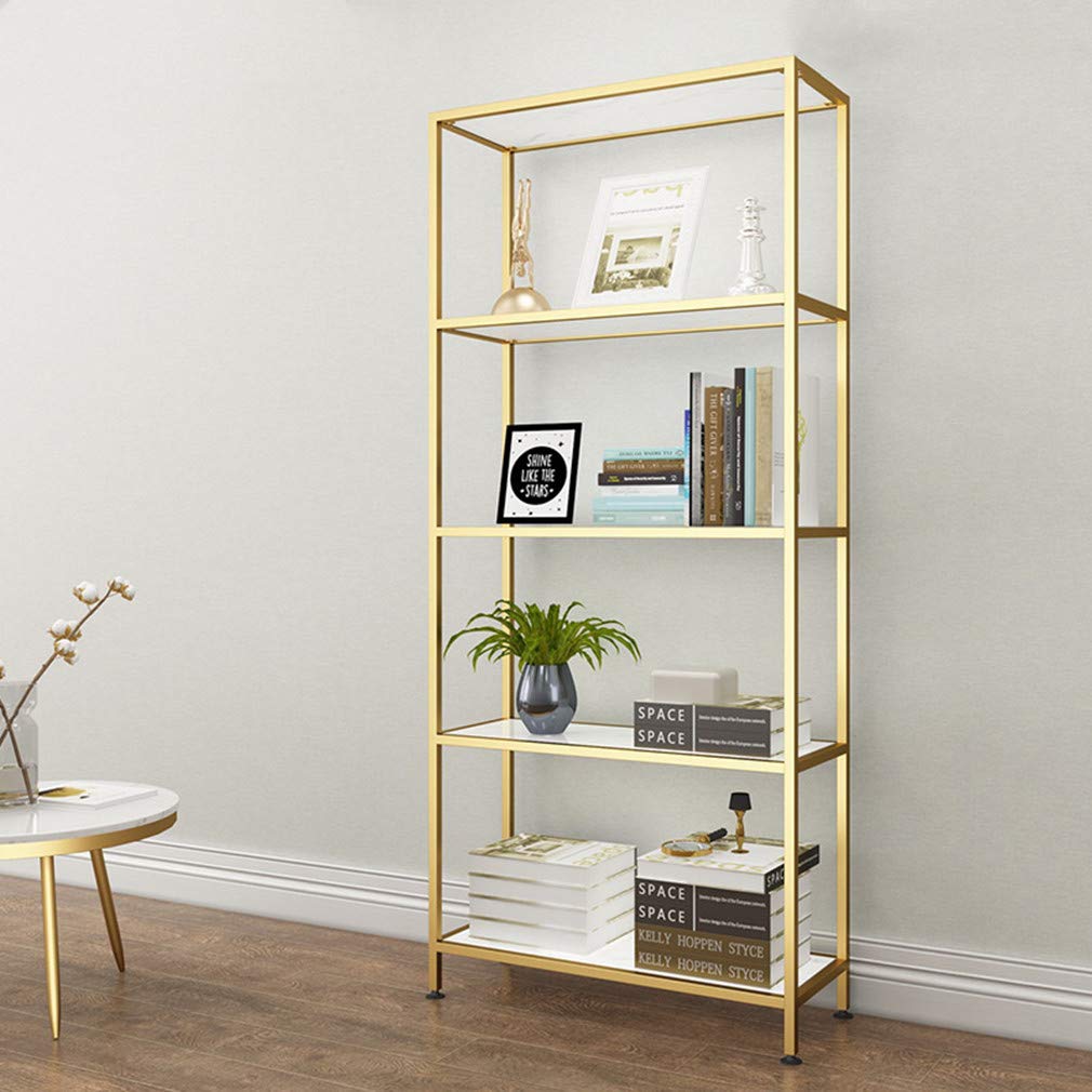 Nuevo Elton 5 Shelf Glass Bookcase In Gold Hgsx188