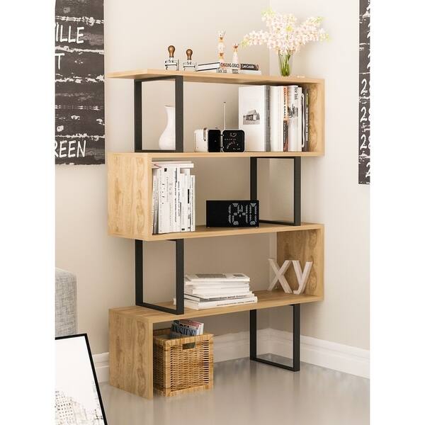 Bestier 5 shelf bookcase s shaped geometric bookcase wood storage corner shelves z shaped 5 tier vintage industrial etagere bookshelf stand for home office living room decor books display. 3 tier wood geometric bookcase home basics 2020 ads offers 2020 deals and sales check price for 3 tier wood geometric bookcase home basics get it to day. The open and airy design welcomes in contemporary charm in any room in the house or office.