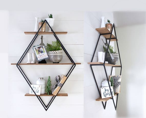 Diamond Book Shelf Metal Wood Geometric Open Shelving Etsy