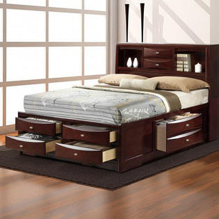 Platform Storage Bed W Bookcase Headboard Bed Size King Color