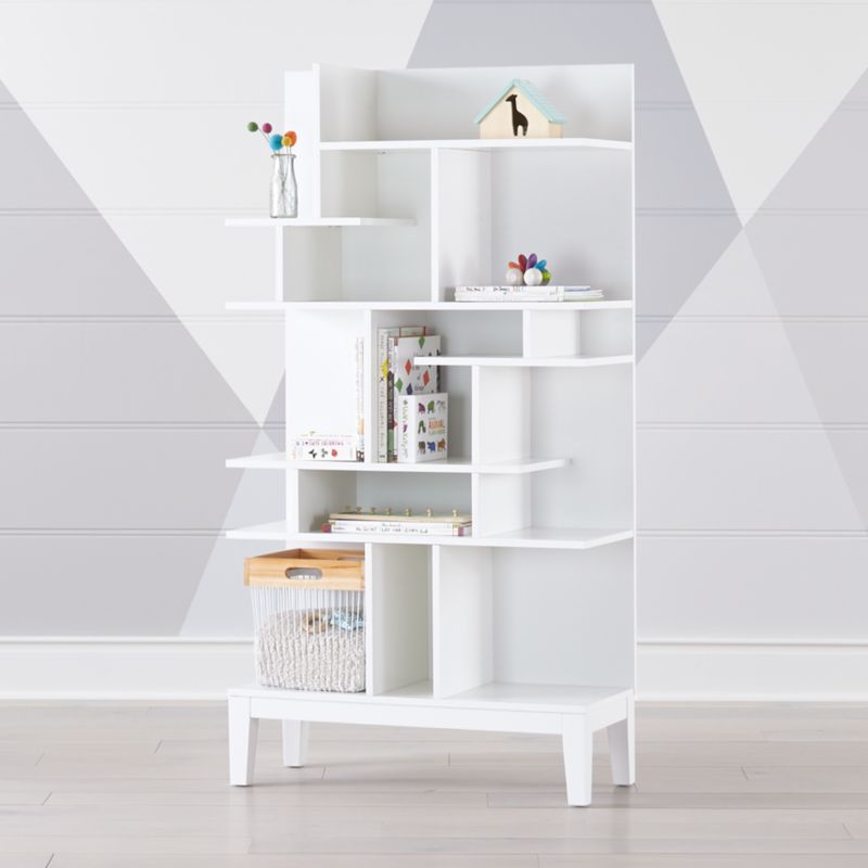 Tall White Modern Geometric Bookcase Reviews Crate And Barrel