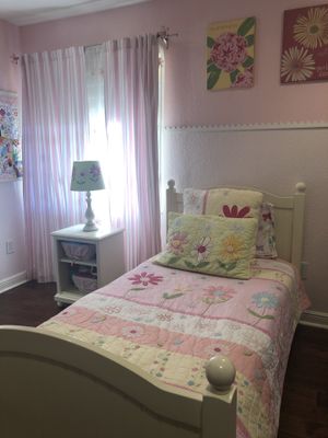Teen Girl Bedroom With Hanging Rattan Chair And White Ladder